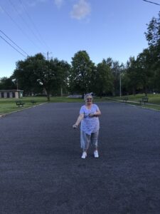 Thérèse Benoit joue à la pétanque le 20 juin 2017 au terrain du parc Lecavalier situé à Longueuil.